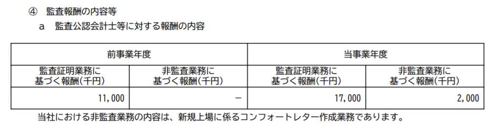 上場直前の監査報酬の状況は以下のような感じです。