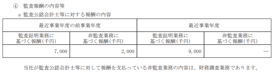 上場直前の監査報酬の状況は以下のような感じです。