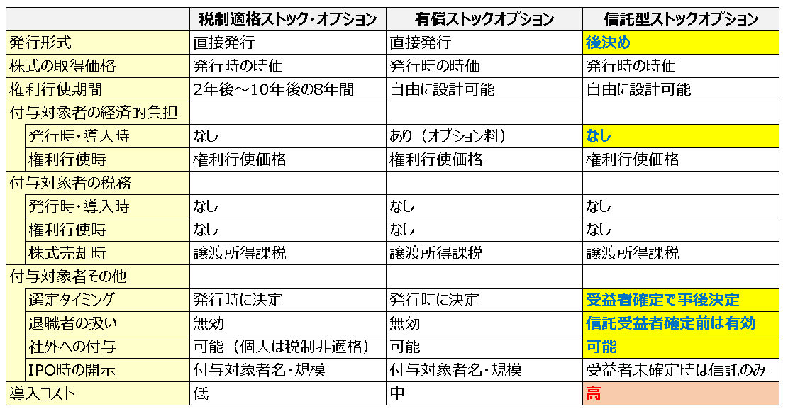 信託型ストックオプションの制度比較についても、