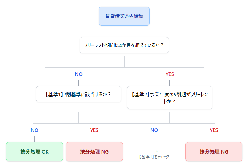 ⚠️ 【基準2:5割基準】フリーレント期間が特定の事業年度に集中