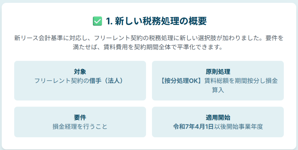 これは、フリーレント期間の費用を繰り延べ、契約期間全体で均等に費用化できるというメリットがあります。この新通達は、令和7年4月1日以後に開始する事業年度から適用されます。